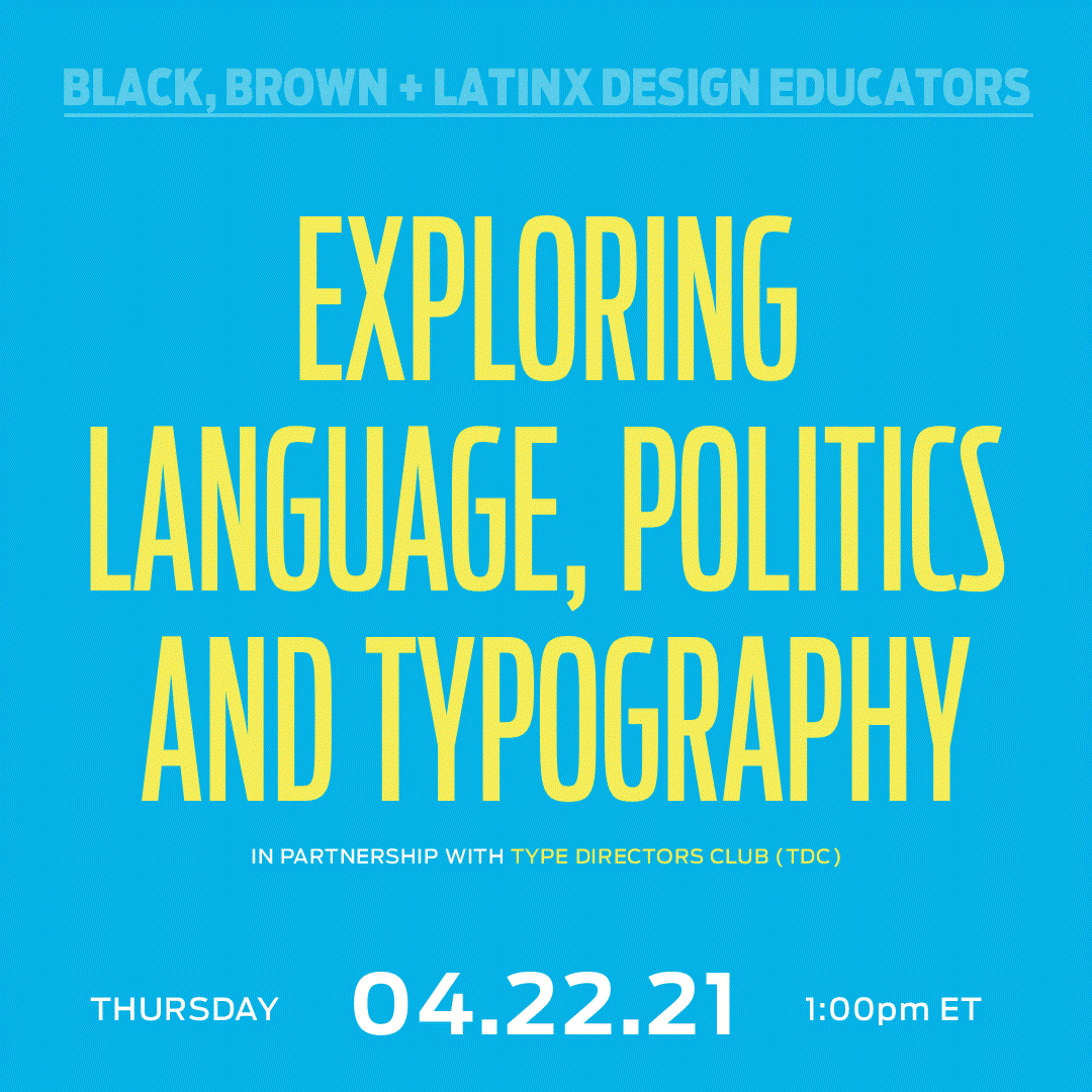 Join designer Kelly Walters, author of the new book Black, Brown + Latinx Design Educators: Conversations on Design and Race, alongside design educators David Jon Walker and Shantanu Suman as they discuss the intersection of language, politics and typography in their design practice.