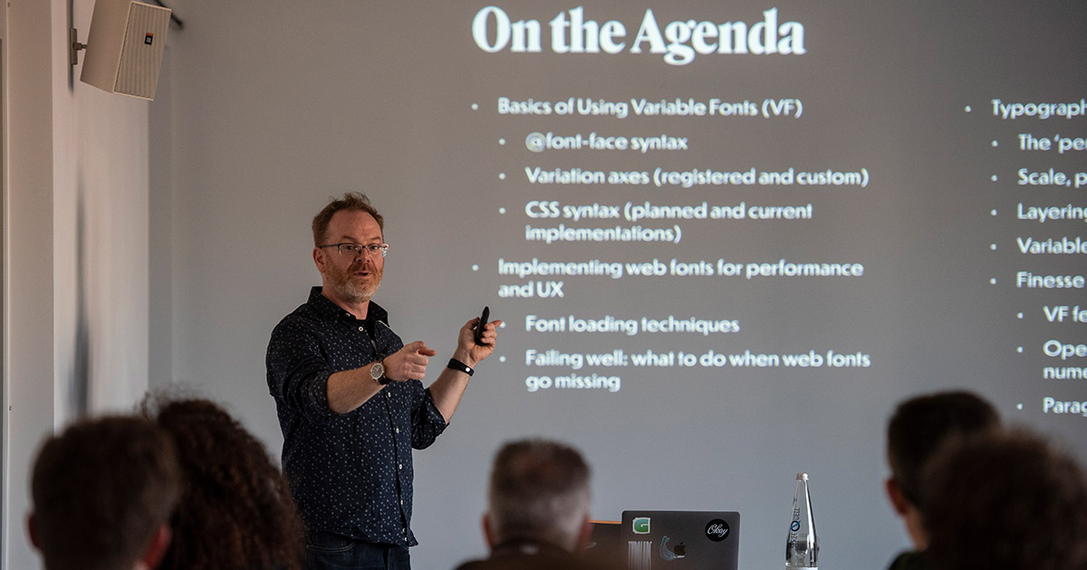 Part talk, part workshop—this event will introduce attendees to variable fonts (the latest iteration of the OpenType specification) and look at all the ways they can transform how we think about typography on the web. We’ll start with a showcase of the different kinds of standard and custom axes of variation, how they work on the web, and then look at ways they can transform how we think about what typography is, and how we practice it. Finally, we’ll take a look at how variable fonts can enable greater design flexibility and bring better editorial design to the web then you ever thought possible.