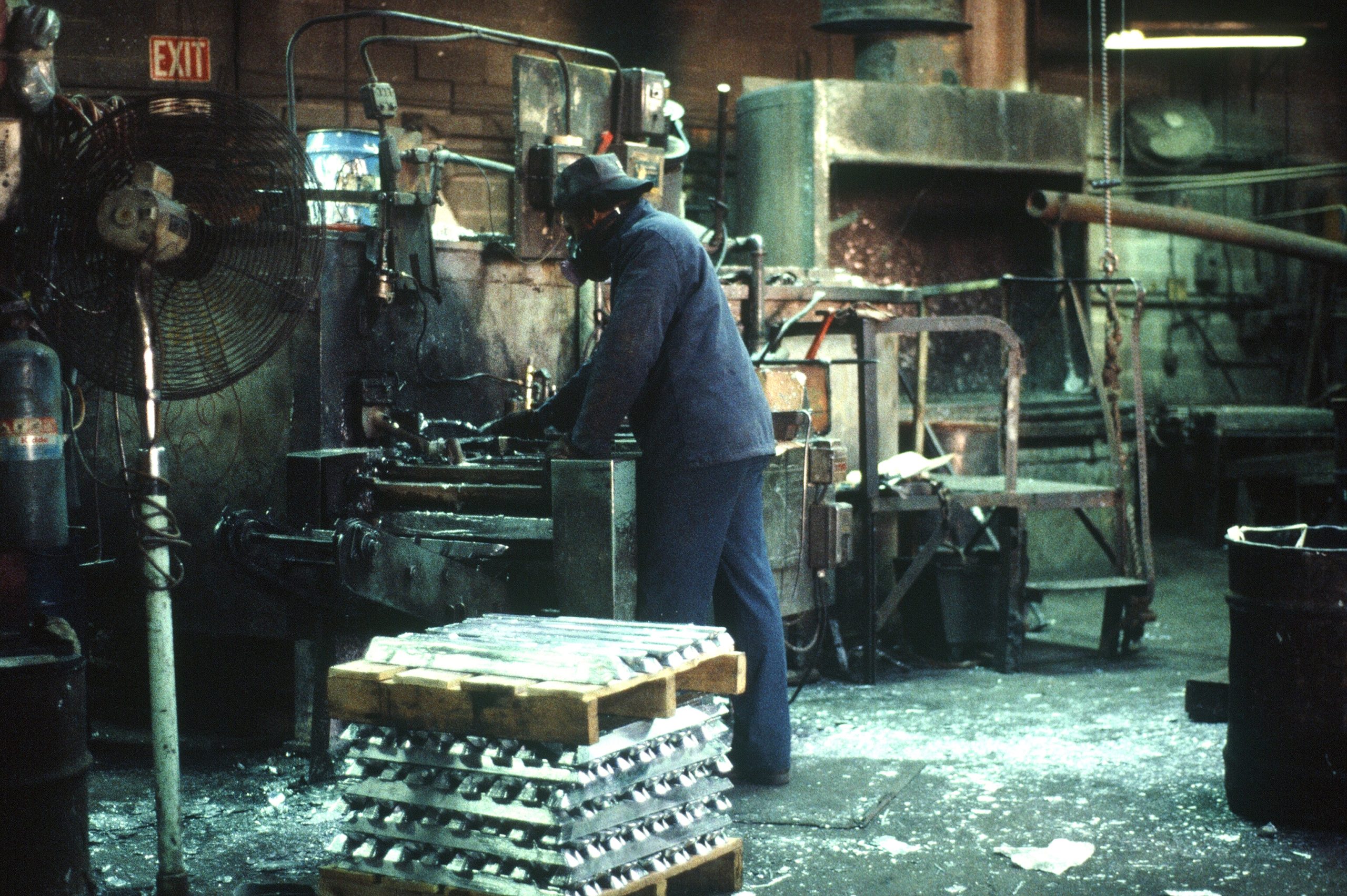 In the early 1980s Ron Gordon and his associate, Dean Bornstein, traveled around New York City to document the letterpress shops that were still in operation, including Bowne & Co., the Harbor Press, Pittsburgh Metal’s foundry, Peter Kruty Editions, Grenfell Press, Ron’s own Oliphant Press, and Charles Press (shown above).
