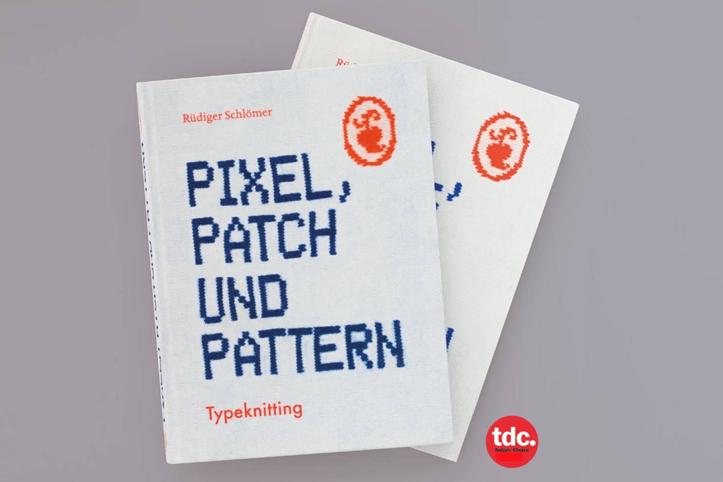 "At first glance, the cover is extremely unassuming and without further inspection you would walk right past it. With a closer examination, its apparent pixelated, title in all caps wears a distorted, woven-textured effect with its added hybrid brew of Anglo-German: Pixel, Patch und Pattern. As your eyes peer down to the bottom of the cover, innocuously set in Futura, Typeknitting leaves you intrigued and you are overcome with curiosity.