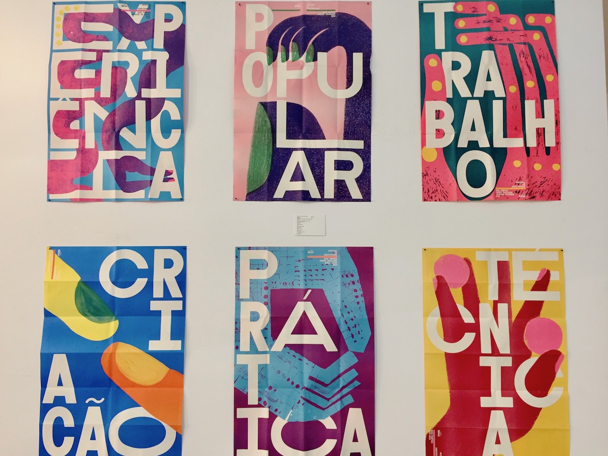 Installation view of Bloco Gráfico’s SESC Pompéia 2018 poster set at The Cooper Union in New York.