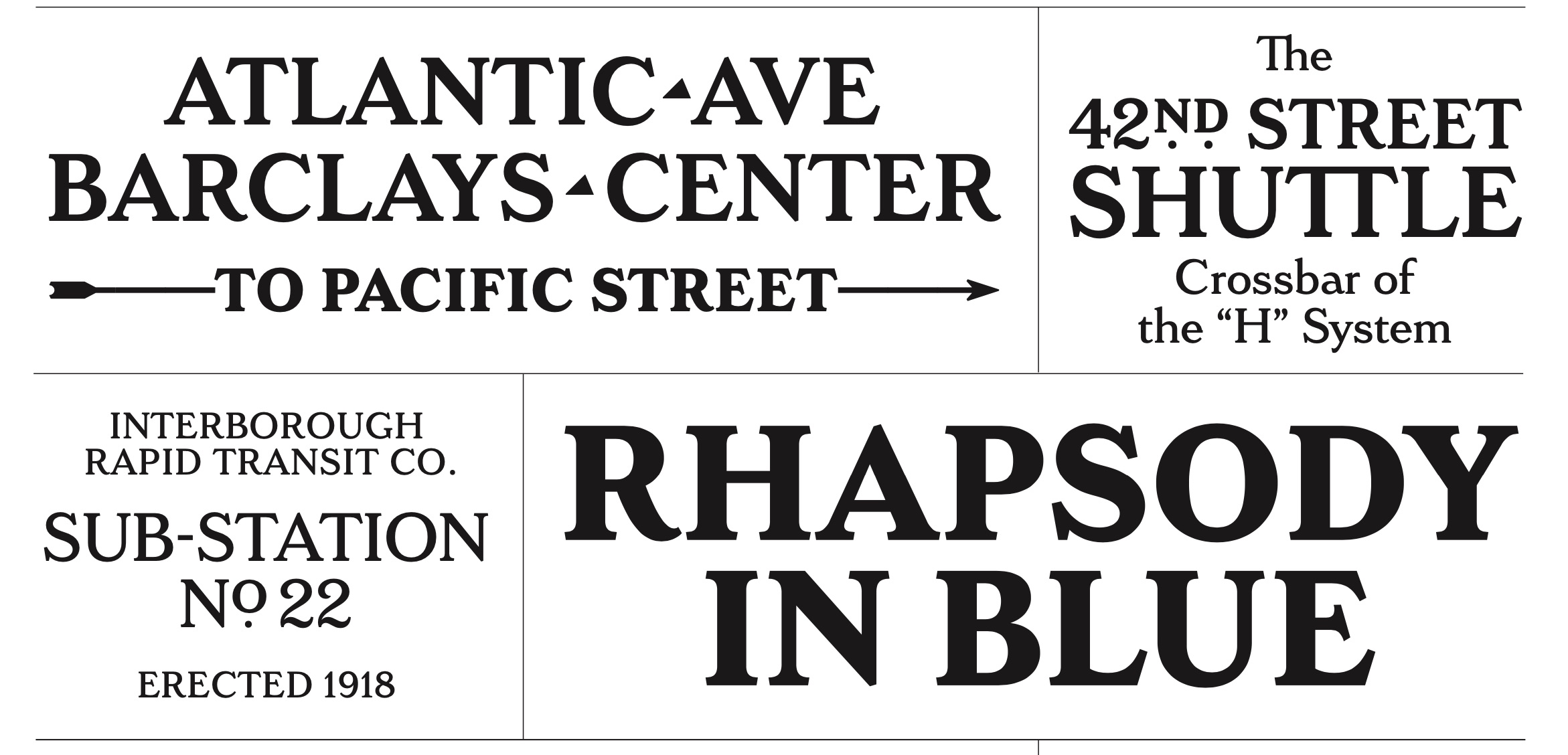 The lettering on them — the seriffed letters that were used in stations built from about 1908-27 — have this sturdy elegance to them, and feel more related to painted sign lettering from the period than any type, historic or modern. The challenge is, of course, taking a vague style of lettering that differed from sign to sign and turning it into a functioning typeface that works in modern usage without losing its soul. I’ve been working on it off and on since 2011, and it looks nothing like how it did when I started, but it is probably my favorite thing I’ve worked on in my professional life.