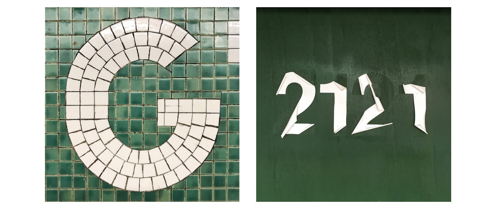 The letter G and number 2121 found and featured on my Instagram feed.