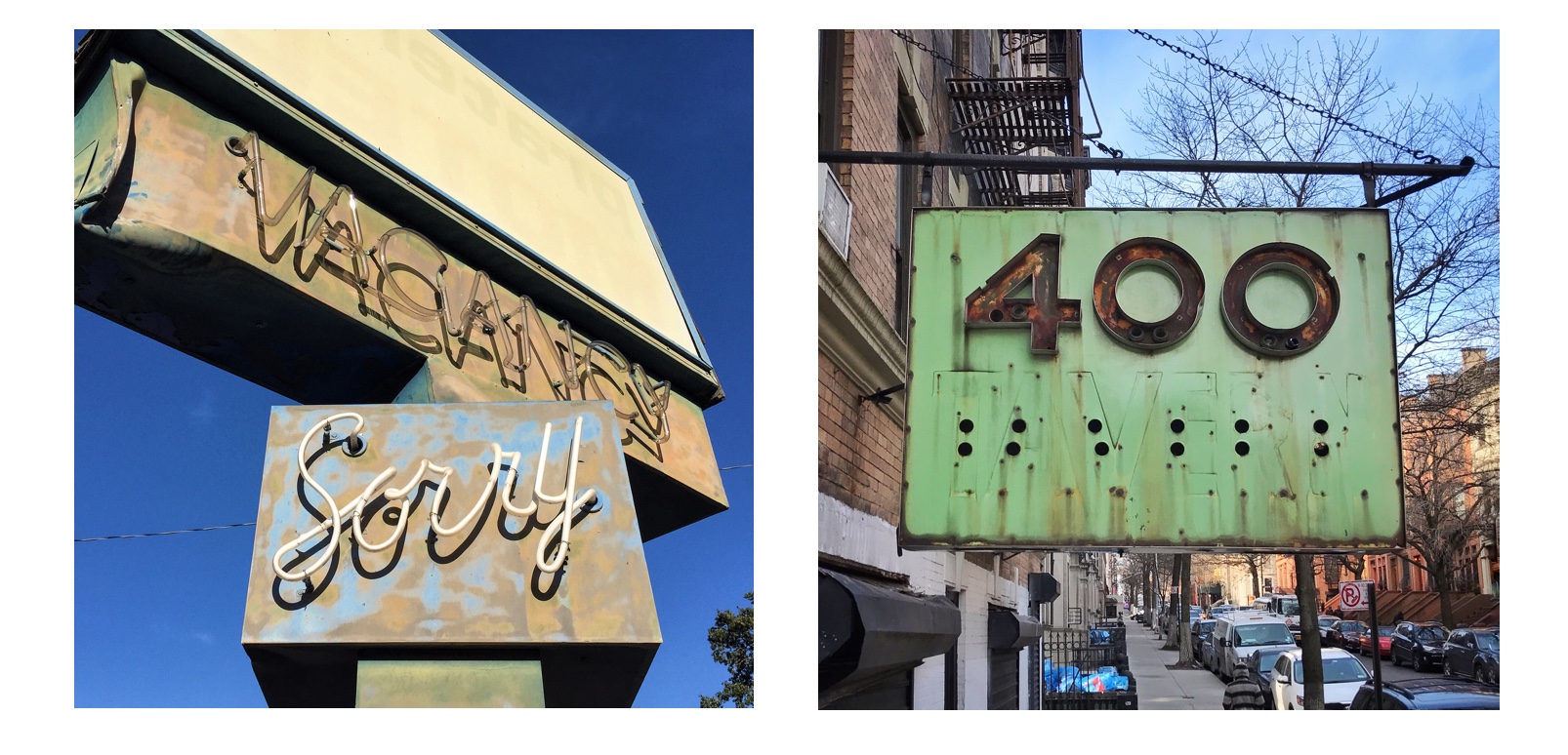 Signs found and posted on Instagram - Vacancy Sorry from 2016 and 400 Tavern.
