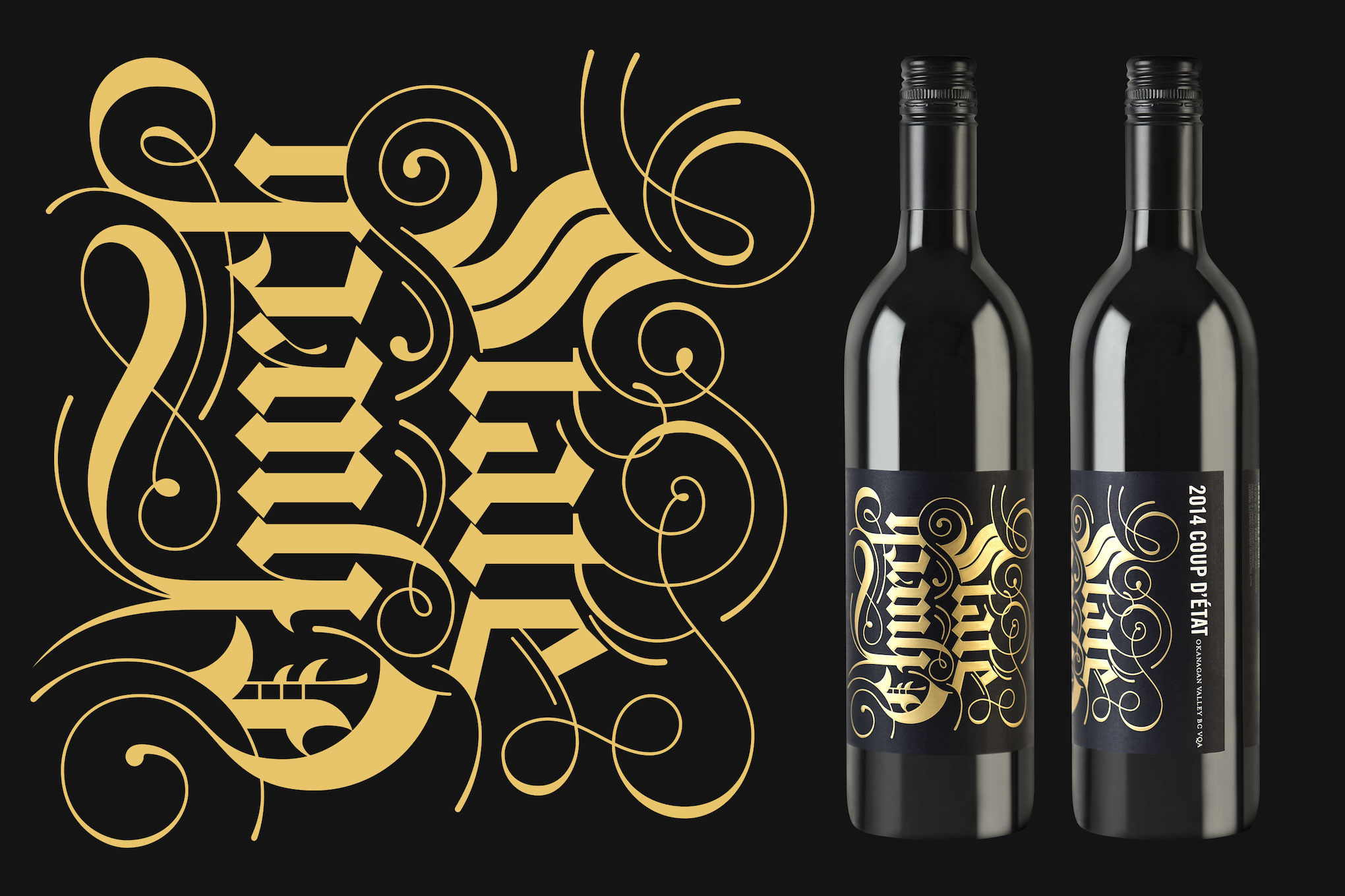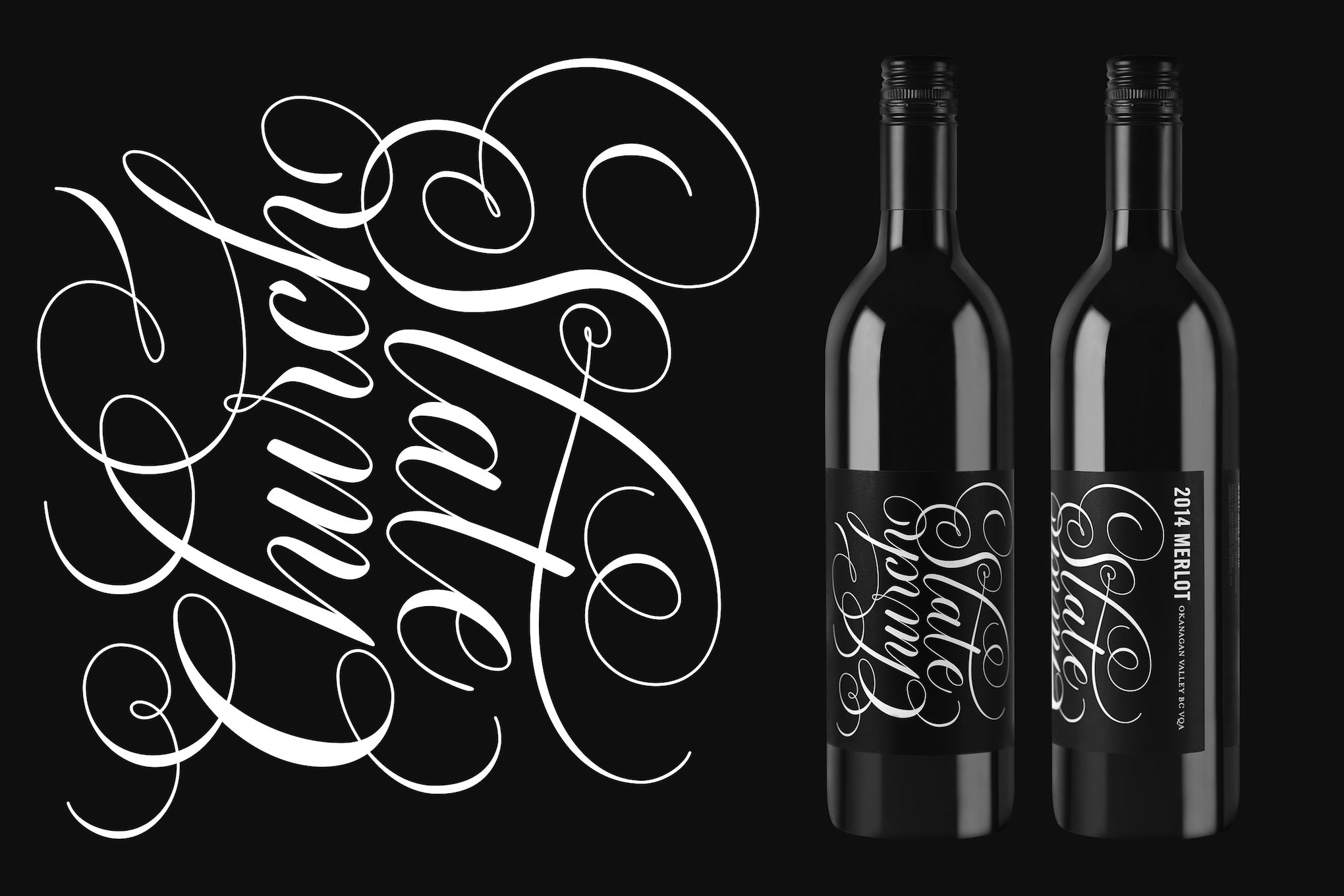 A collection of calligraphy and lettering pieces created for Brandever in 2015-2016 for wine labels for Church and State Wines, a Canadian winery.