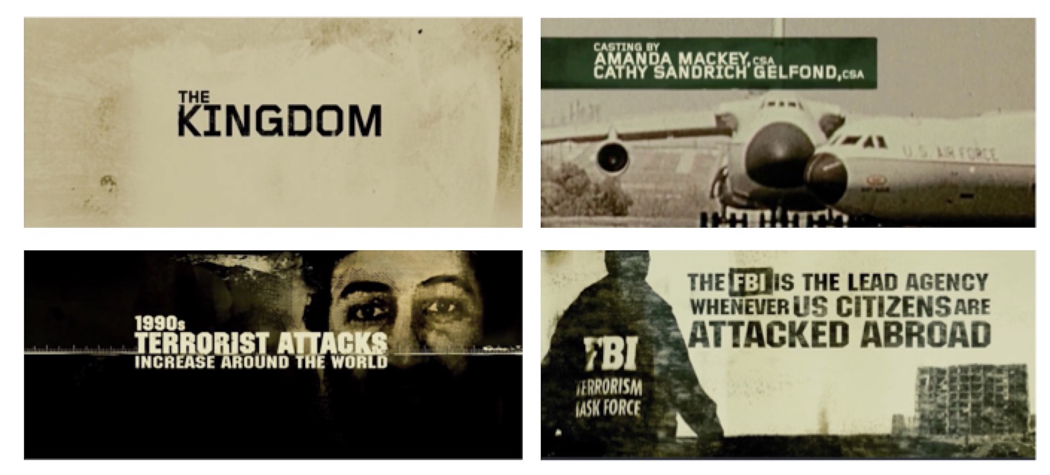 Stills of titles and historic background sequence by PIC Agency for 2007 feature film, The Kingdom .