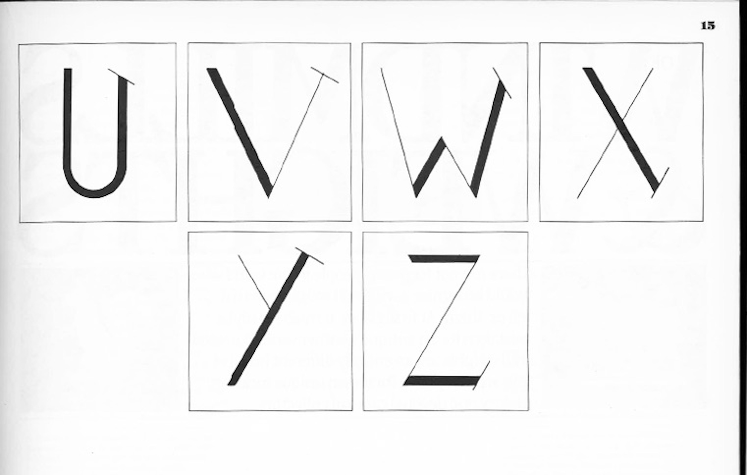 Of the prize-winning entries, we are illustrating the alphabet of 16-year-old Toby Frere-Jones of Brooklyn, New York, because his “professionalism” in researching, designing and rendering his alphabet gives evidence of a promising future in graphics. Toby, as you might suspect, has been drawing since he was old enough to hold a pencil. He also paints, sculpts, collages, and he is no mean photographer as anyone can see from the complex self-portrait he submitted. There seems to be hope of a Toby Frere-Jones in our future.