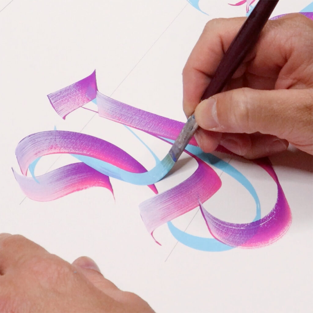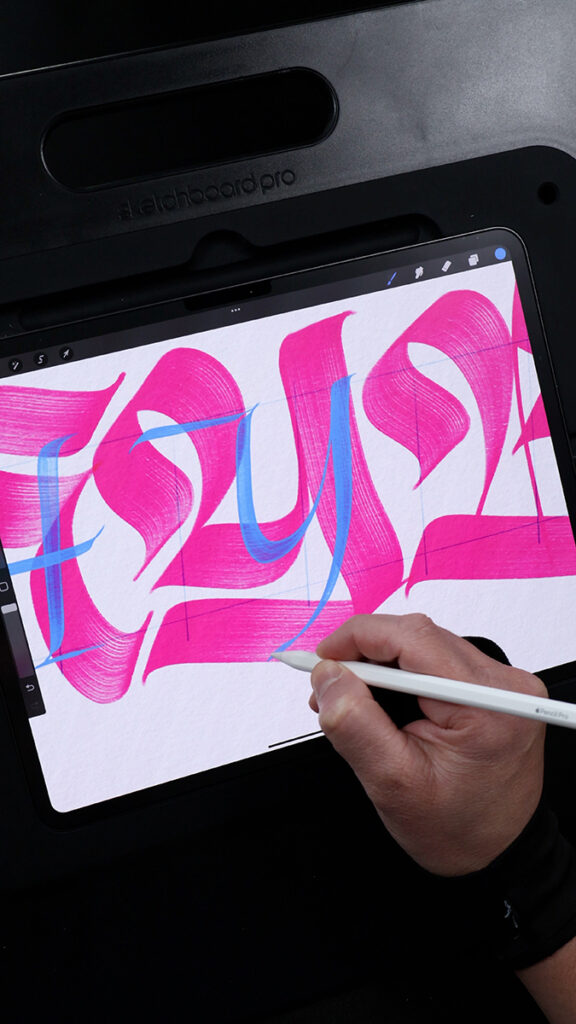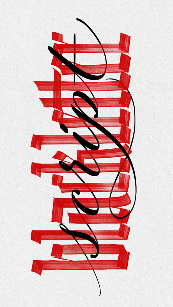 My process often begins with ink and brush, later migrating to digital. On the iPad, I rely on custom brushes I’ve designed, which faithfully capture the textures of analog tools while offering the flexibility of the digital medium. These tools, which I also make available as a Brush Pack, are integral to both my personal and commercial projects. Many of these explorations evolve into artworks, commissioned lettering pieces, or products available in my online shop.