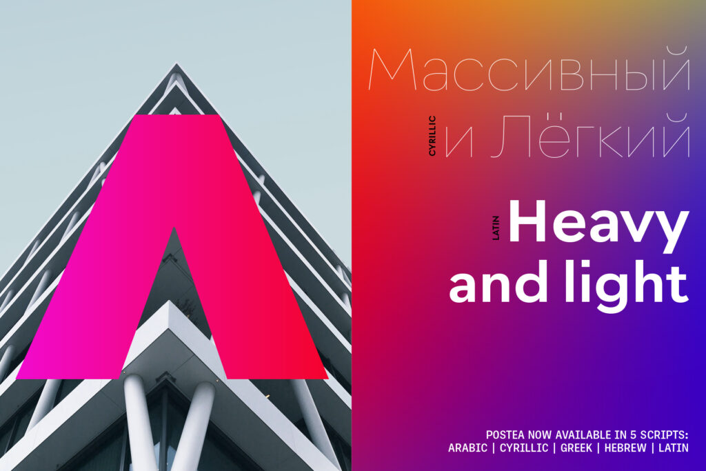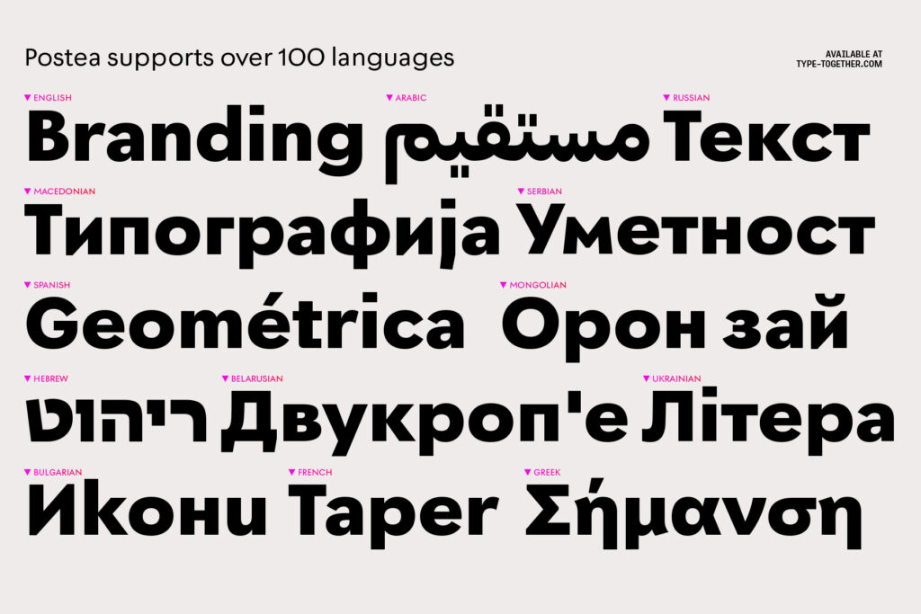 The Postea font family is Veronika Burian and José Scaglione’s take on German geometric typefaces, reshaped with the right attributes for setting paragraphs and headings, and perfect for branding and text use. Some typefaces are a rough tool, like a pumice rock: abrasive to the senses, unforgiving, and unhelpful for most reading situations.
