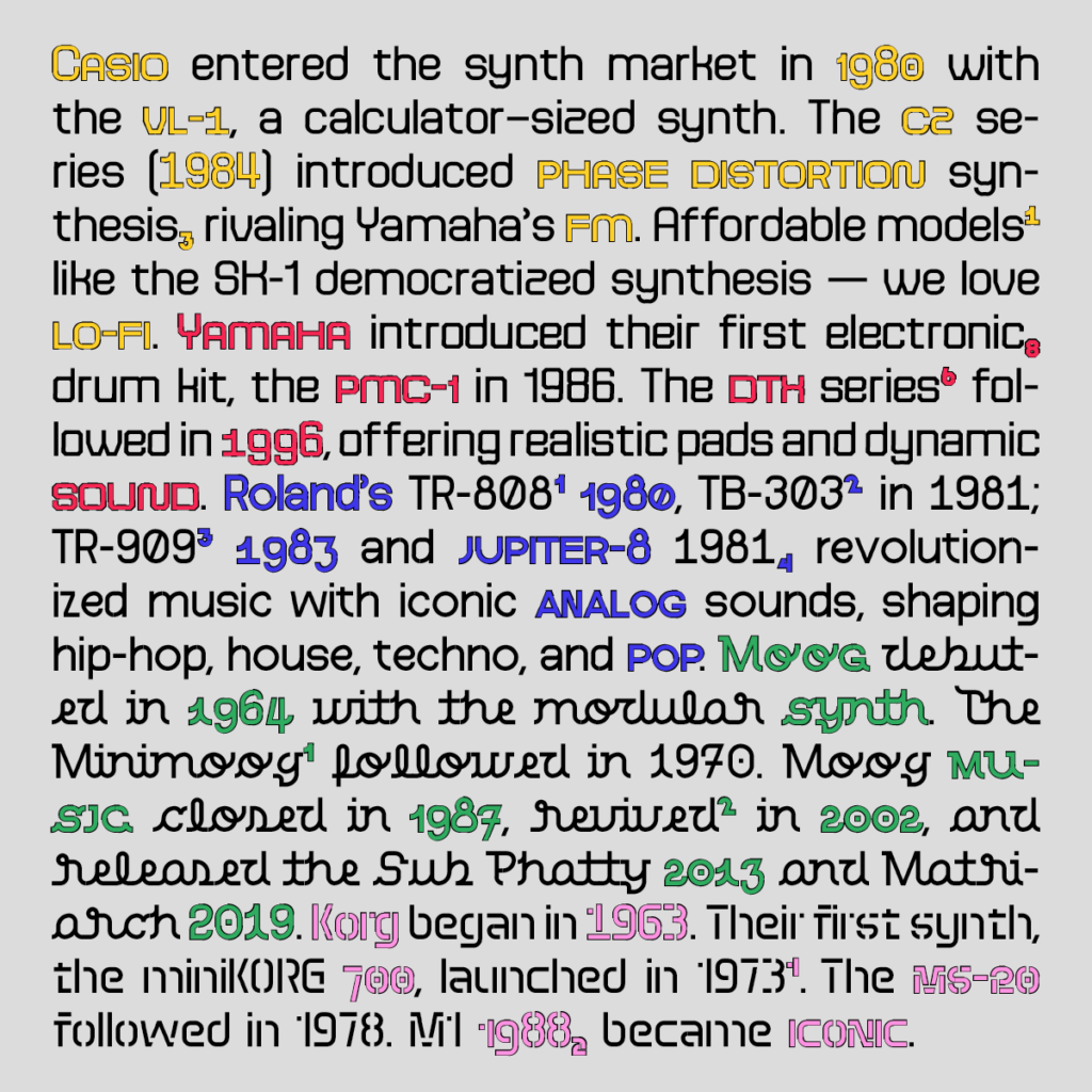 Segmentor is a typeface family and a tool to create live visuals and expressive graphic output using the Roland SPD-SX Pro drum pad. The family consists of 5 variable fonts that resemble different genres of music through the way they interpolate. The goal of the project is to push typographic boundaries, explore rhythm in type design and tool development for live performance visuals.