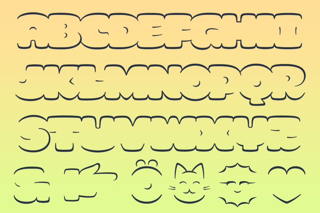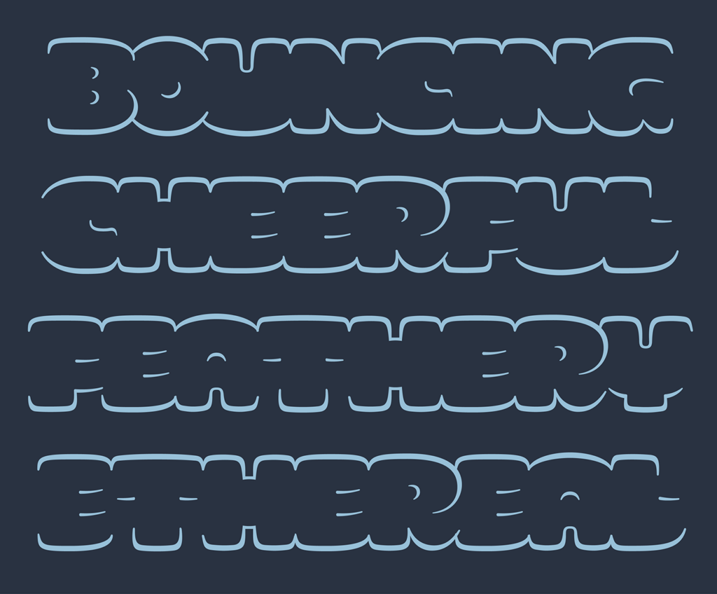 SMOR is an unlikely design: a connected outline face. This all-caps display typeface aims to connect top and bottom profiles of letters into bubbly words. SMOR is inspired by graffiti throwups: their speedy, gestural shaping, cartoonish joy, and the idea of defining words through their outer silhouettes rather than internal structure, strokes, skeletons (as commonly suggested by the calligraphic legacy in type design)… or even separated letters. SMOR was recently released by Overlap Type. https://store.overlaptype.com/fonts/smor